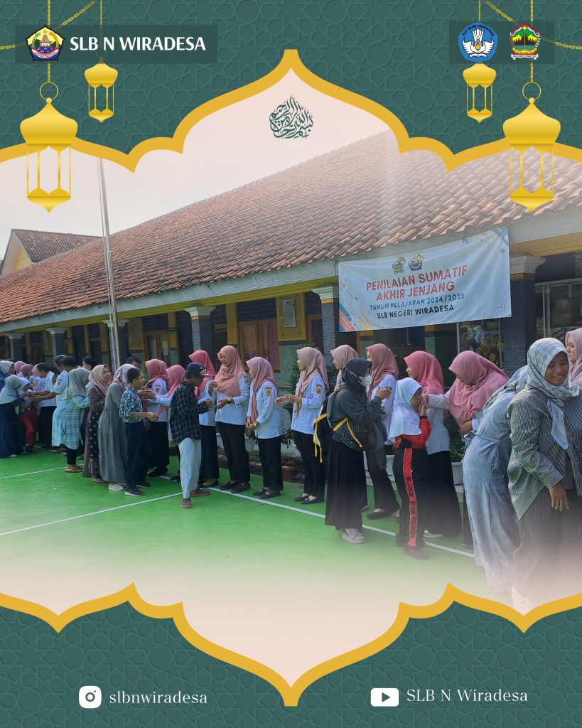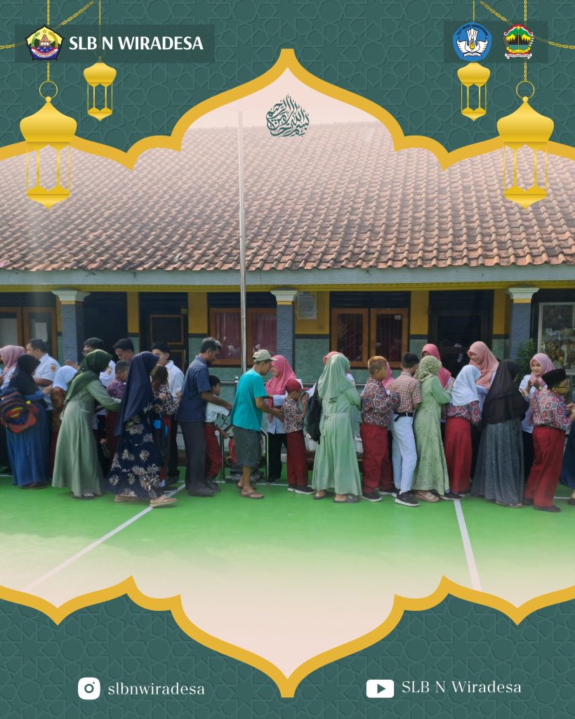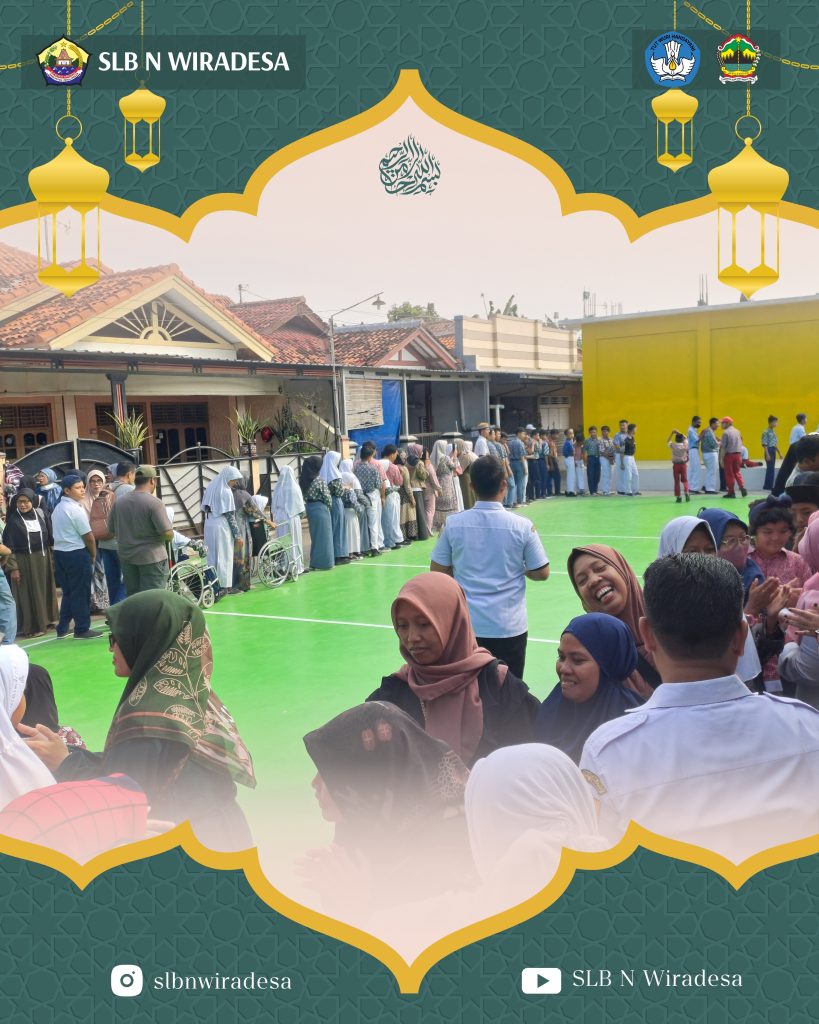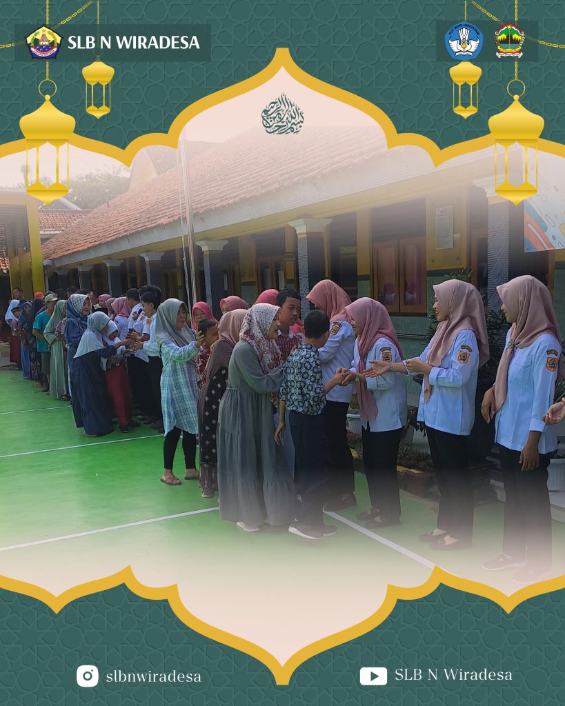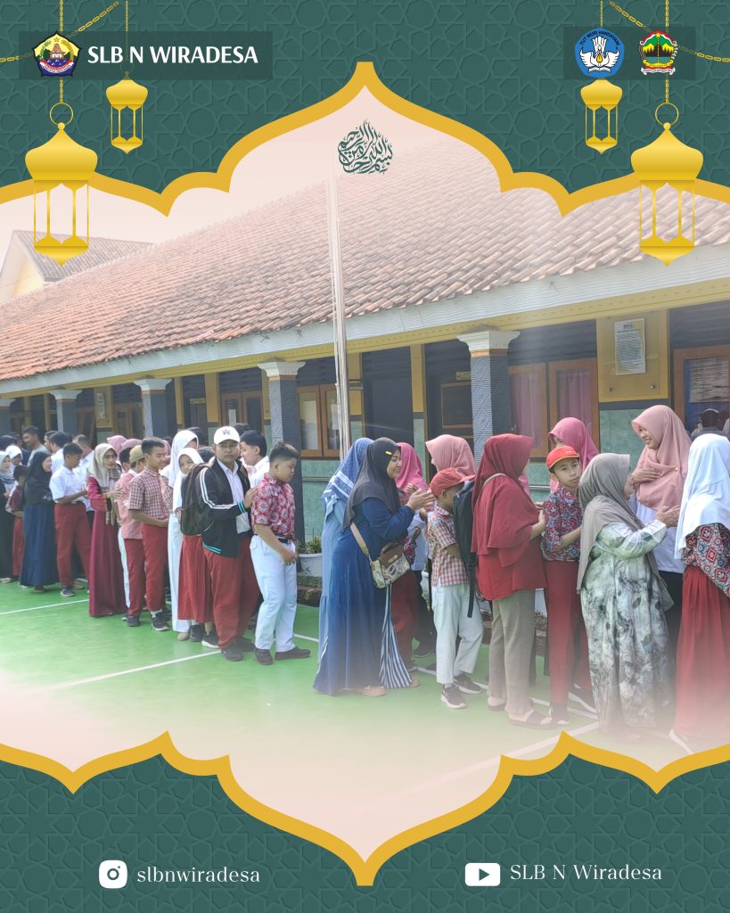 Mengawali hari pertama masuk setelah libur lebaran dengan Kegiatan Halal Bi Halal. Guru, Peserta didik serta wali murid berbaris dan bersalam-salaman di lapangan SDLB Wiradesa